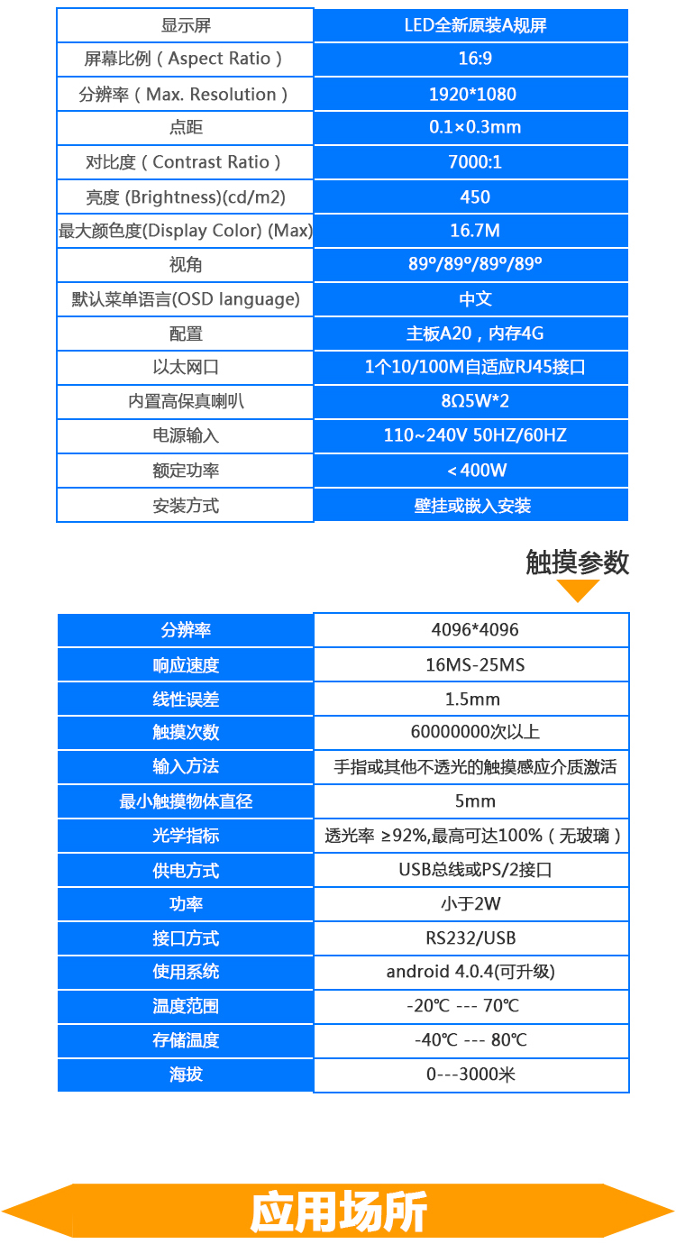 觸摸屏參數(shù)(紅外觸摸屏) | PC標(biāo)配參數(shù) |